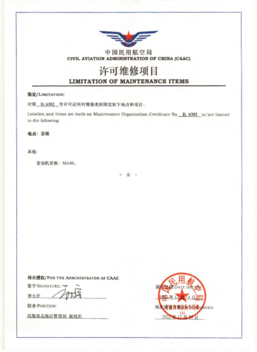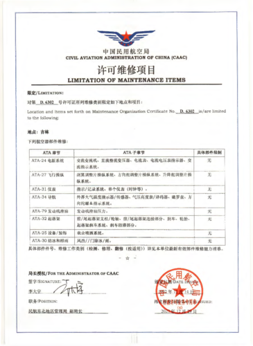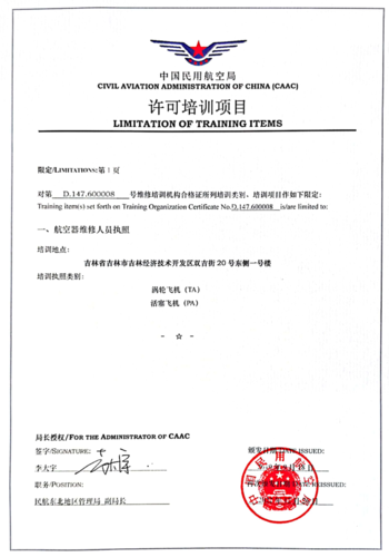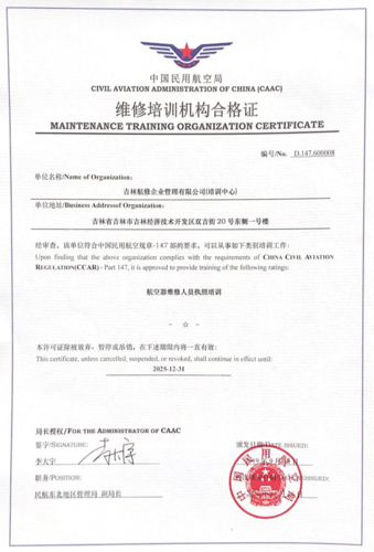 公司是中國民航局批準的CCAR-147民用航空器維修培訓機構,是吉林省首家CCAR-147基礎執照培訓機構。公司具備CCAR-66部軍民融合基本技能考點資質,同時是航空工業集團唯一一家民用航空器維修人員基礎執照培訓企業,也是民航局批準的全國首家軍民融合基本技能考點。